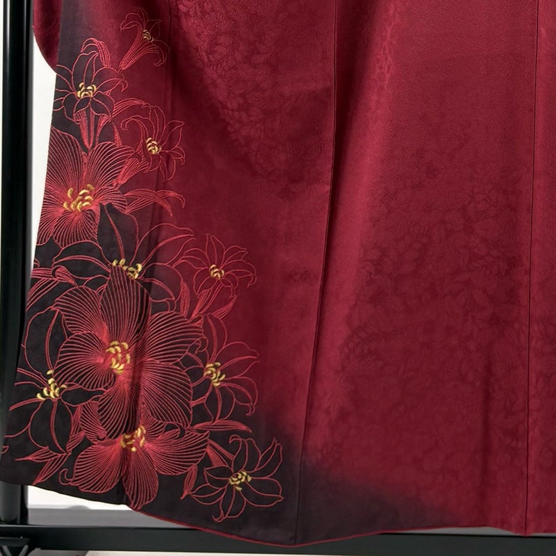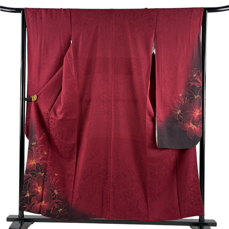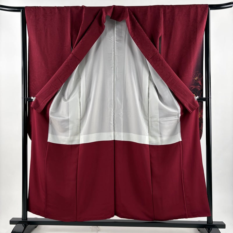 【振袖】 赤系 えんじ色 秀品 A 約150cm~約159cm 裄丈63cm-64cm (S)size 袖丈91cm以上 9990-29990 美品 二万以下