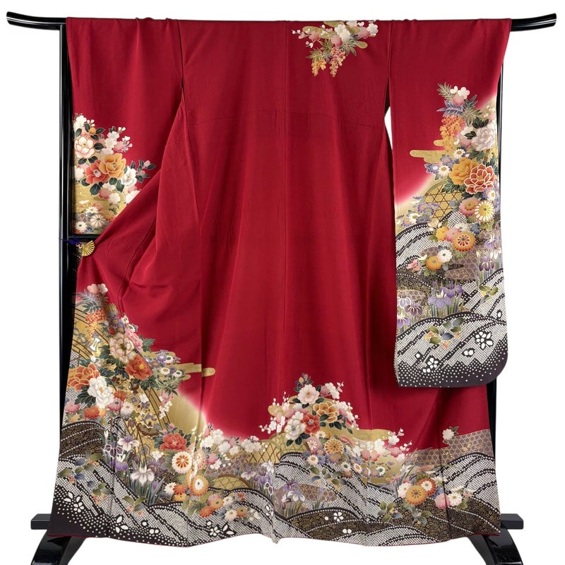 未婚女性の第一礼装としてお使いいただける振袖でございます。 お好みの帯や小物と合わせて晴れの日に相応しい華やかな装いにいかがでしょうか。 ※身丈・裄丈の縫込みの長さは測っておりません。 表地所々にヤケ、衿周りや両袖口中に汚れ、表地所々にシワ、表地所々に金彩の変色がございます。 裏地にシワがございます。 ご購入の際はその点ご留意ください。 ※なお、厳しく商品の状態確認を行っておりますが、記載の汚れ以外にも見落とし箇所がある可能性がある旨ご了承いただけますと幸いです。 沢山の商品の中からご覧いただき誠にありがとうございます。