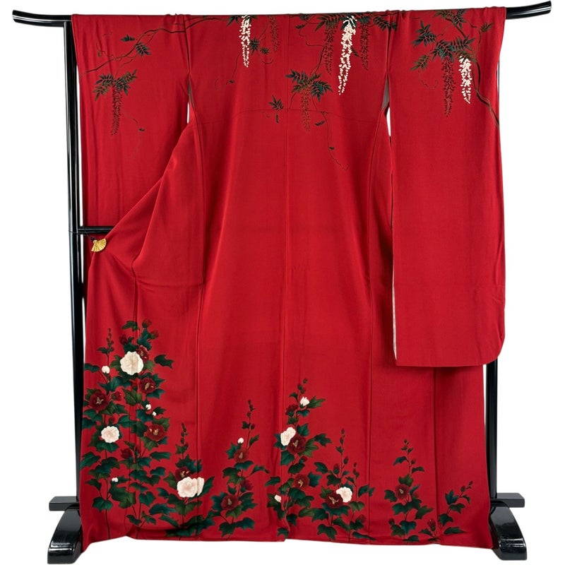 【振袖】 赤系 赤 秀品 B 約170cm~約179cm 裄丈67cm-68cm (M)size 袖丈91cm以上 7990-9980 二万以下