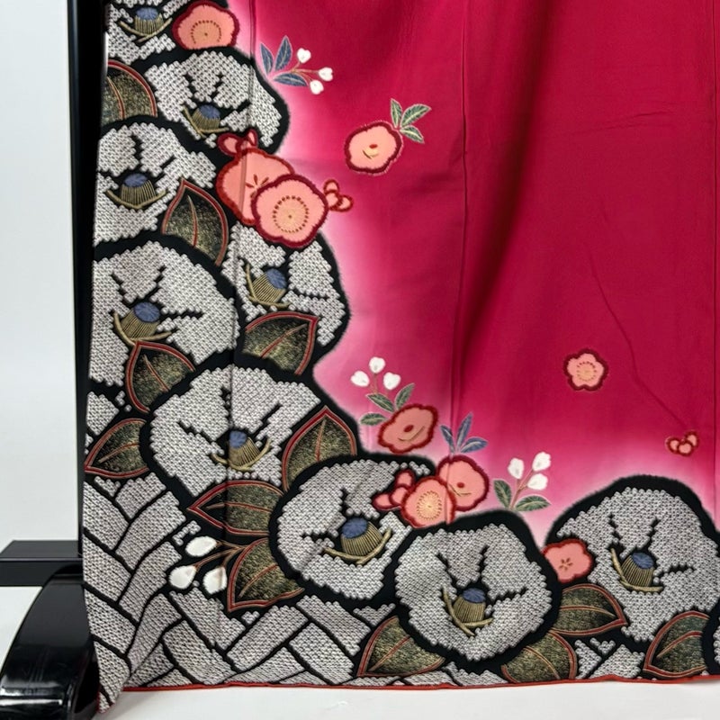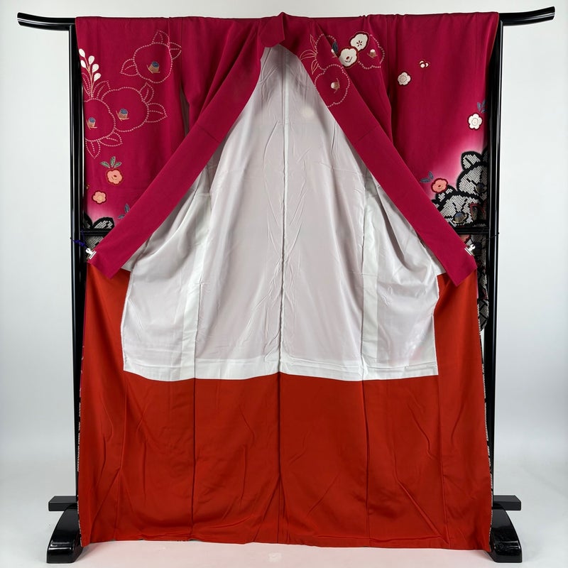 【振袖】 赤系 濃ピンク 秀品 C 約170cm~約179cm 裄丈65cm (M)size 袖丈91cm以上 7990-9980 二万以下
