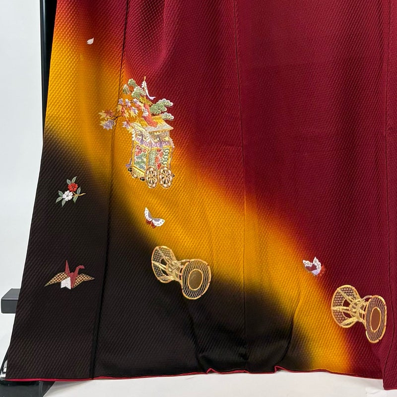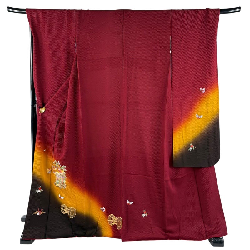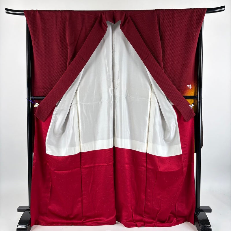 【振袖】 赤系 えんじ色 秀品 B 約160cm~約169cm 裄丈69cm以上 (L)size 袖丈91cm以上 7990-9980 二万以下