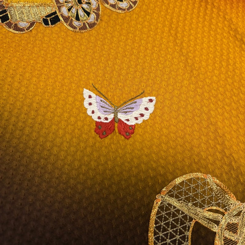 【着物ランク】秀品 【素材】正絹 【身丈】約169cm 【裄丈】約70cm 【袖丈】約113cm 【袖幅】約35cm 【前幅】約30cm 【後幅】約34cm 【サイズ】L 【着物仕立て】袷 【着用時期】10~5月 【状態ランク】ランクB 【着物着用シーン】成人式、謝恩会