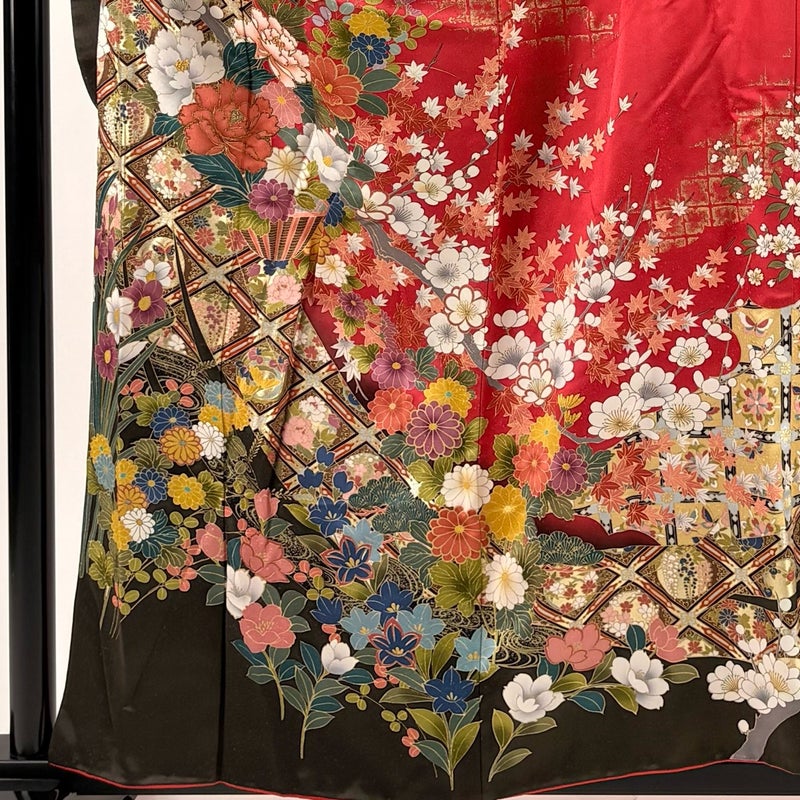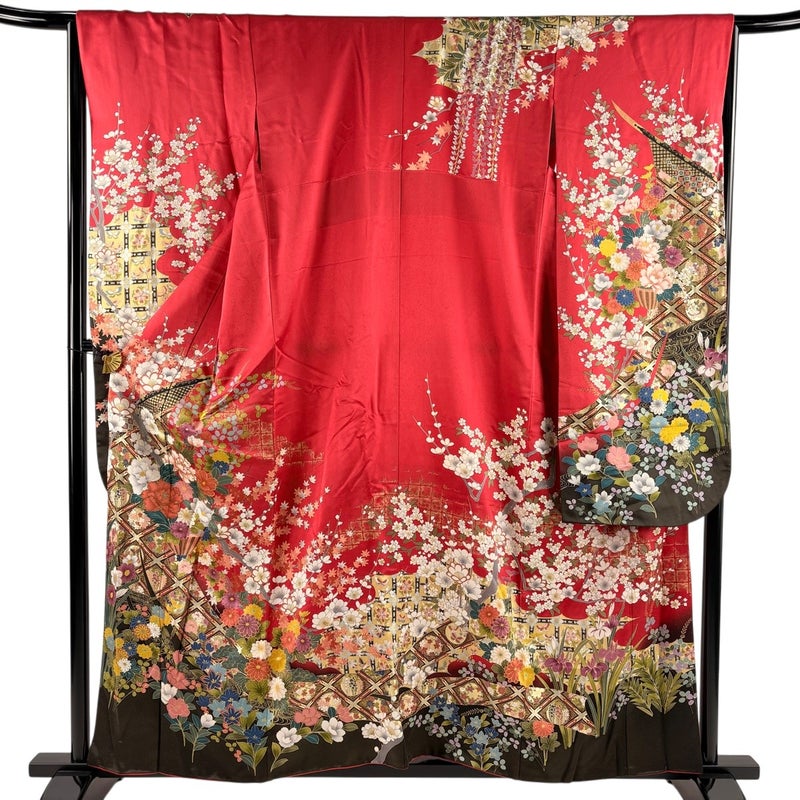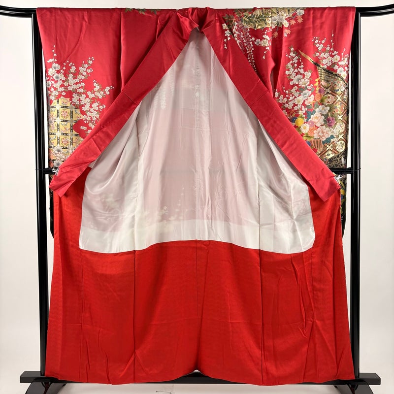 【振袖】 赤系 赤 秀品 B 約150cm~約159cm 裄丈66cm (M)size 袖丈91cm以上 7990-9980 二万以下