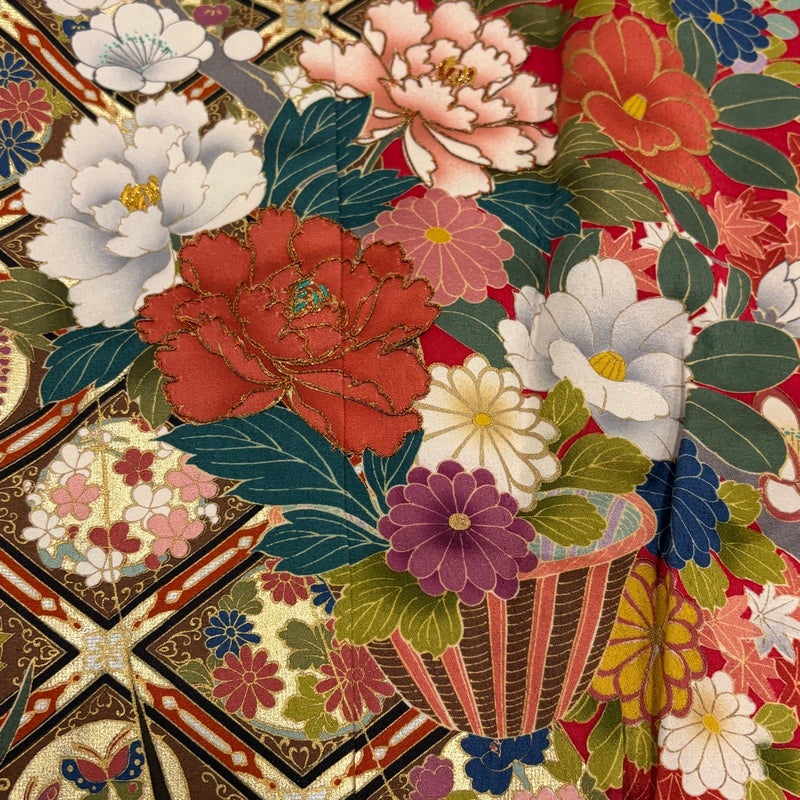 【着物ランク】秀品 【素材】正絹 【身丈】約157cm 【裄丈】約66cm 【袖丈】約104.5cm 【袖幅】約34.5cm 【前幅】約24cm 【後幅】約30.5cm 【サイズ】M 【着物仕立て】袷 【着用時期】10~5月 【状態ランク】ランクB 【着物着用シーン】成人式、謝恩会
