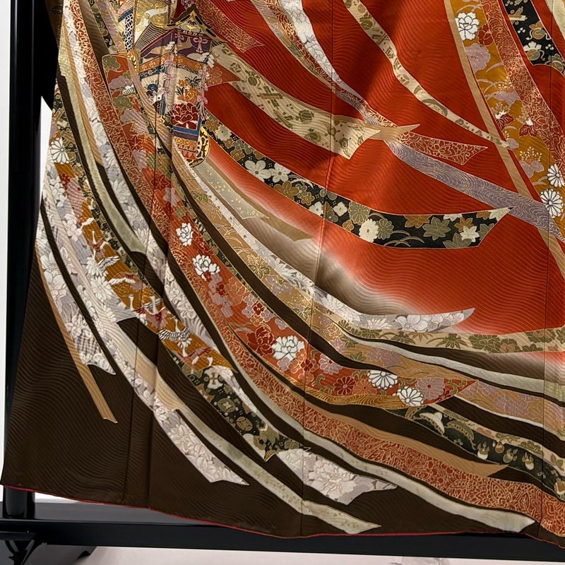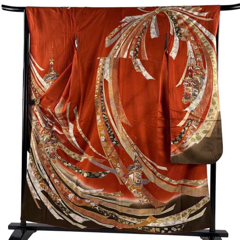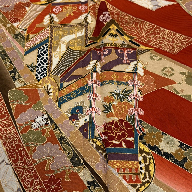 【着物ランク】秀品 【素材】正絹 【身丈】約157cm 【裄丈】約66cm 【袖丈】約108cm 【袖幅】約34cm 【前幅】約23.5cm 【後幅】約30.5cm 【サイズ】M 【着物仕立て】袷 【着用時期】10~5月 【状態ランク】ランクB 【着物着用シーン】成人式、謝恩会