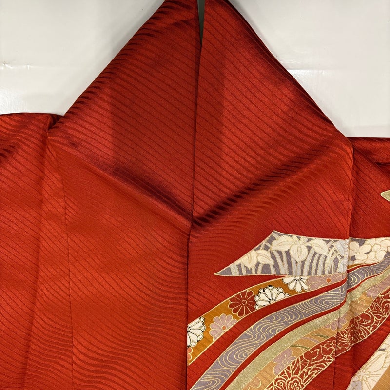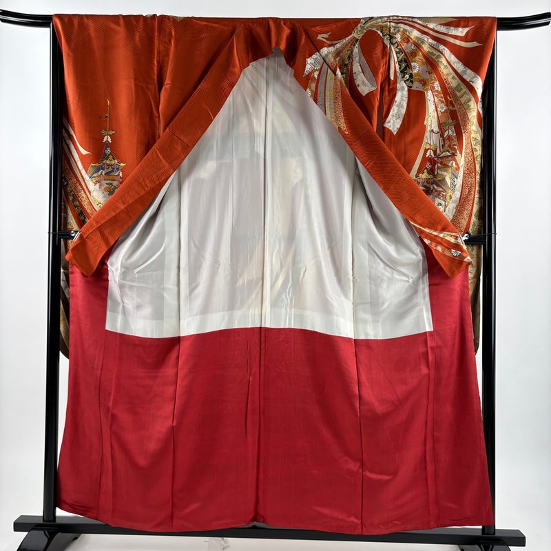【振袖】 赤系 オレンジ 秀品 B 約150cm~約159cm 裄丈66cm (M)size 袖丈91cm以上 7990-9980 二万以下