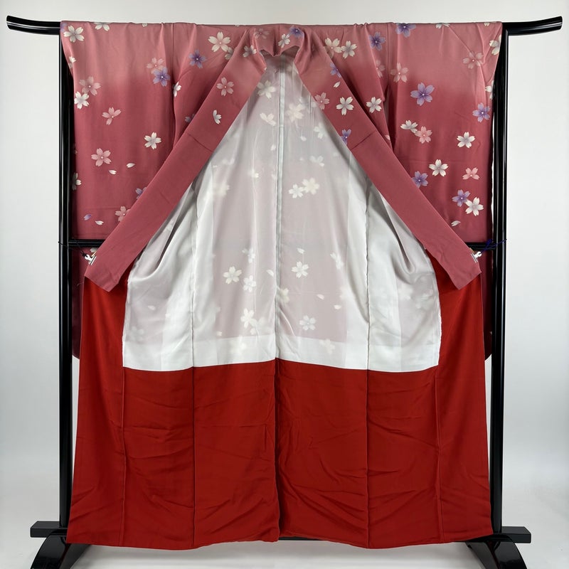 【振袖】 赤系 濃ピンク 秀品 B 約150cm~約159cm 裄丈66cm (M)size 袖丈91cm以上 7990-9980 二万以下