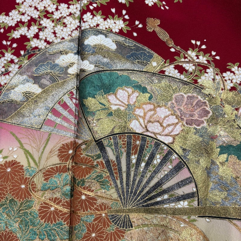 【振袖】 赤系 赤 秀品 B 約160cm~約169cm 裄丈69cm以上 (L)size 袖丈91cm以上 7990-9980 二万以下