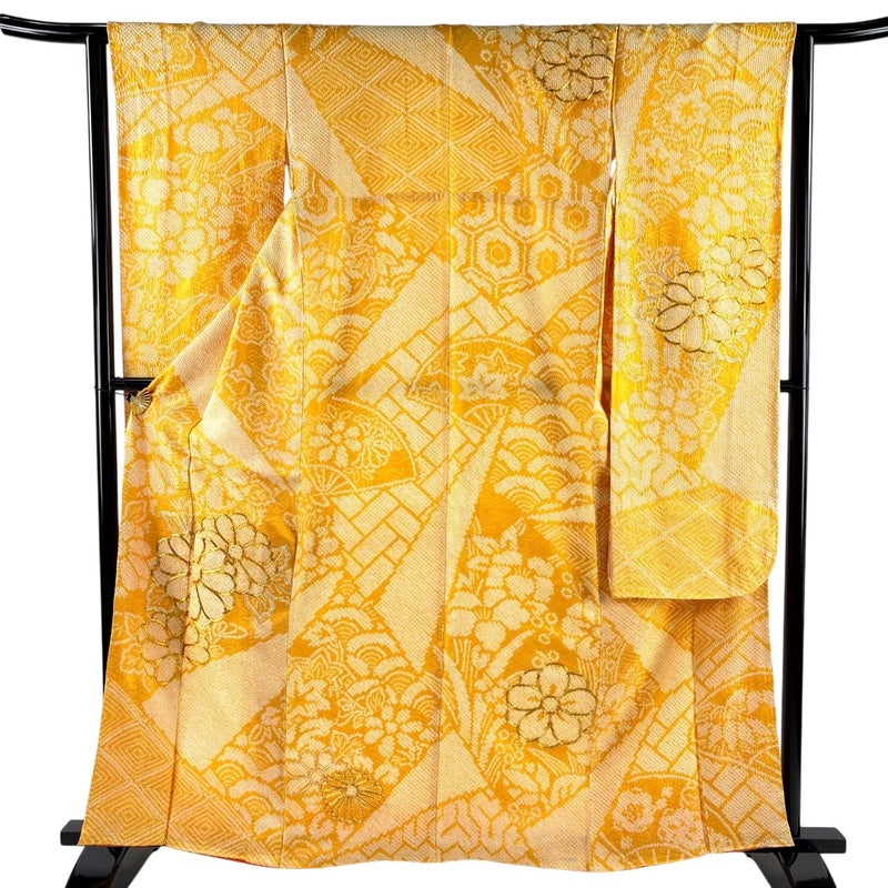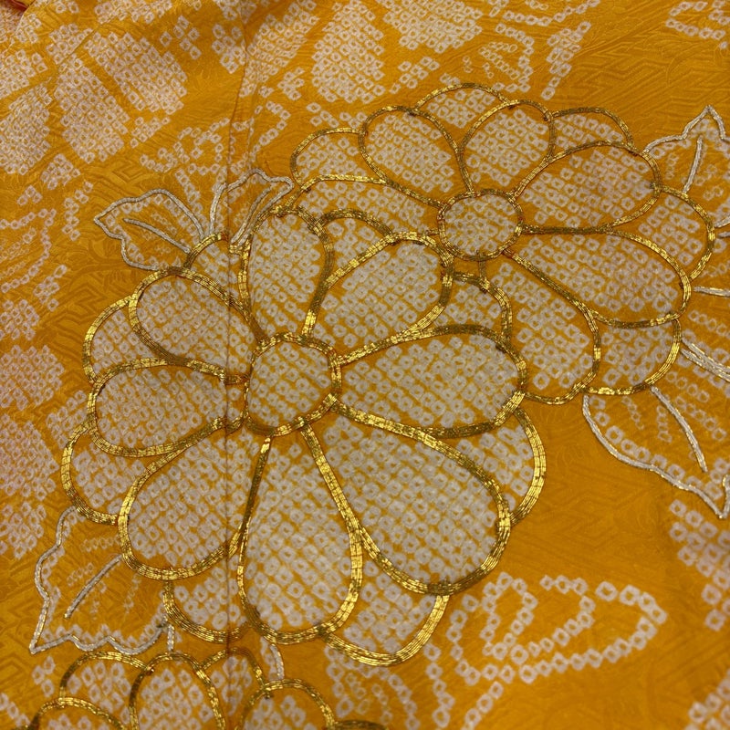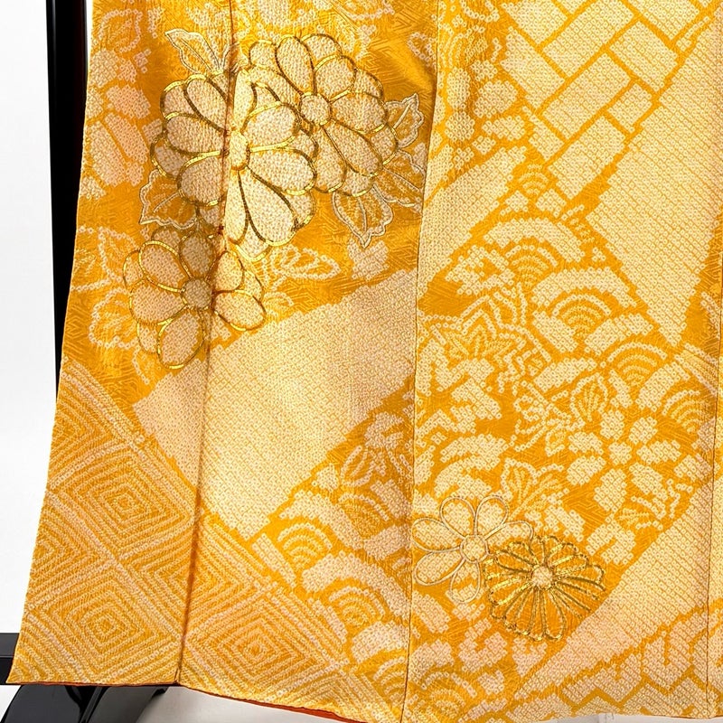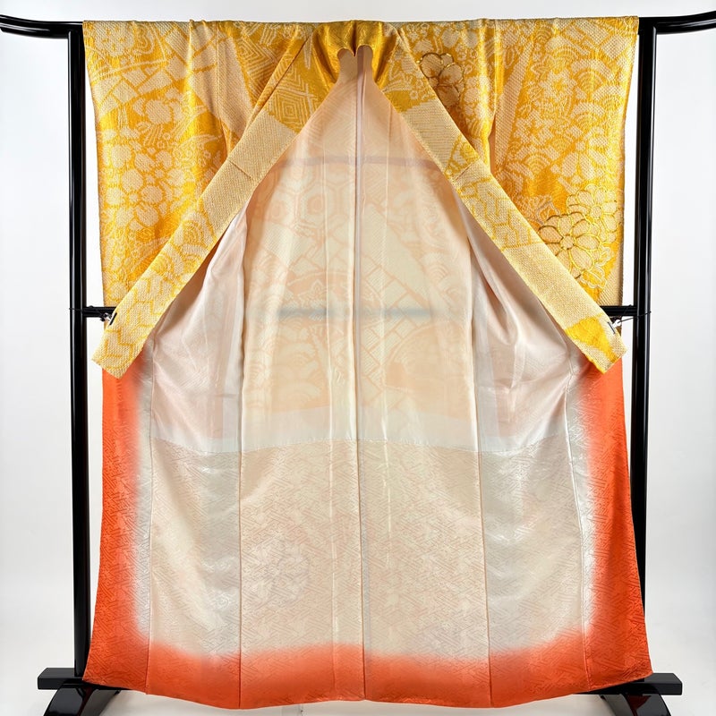 【振袖】 黄色系 山吹色 秀品 A 約160cm~約169cm 裄丈63cm-64cm (S)size 袖丈91cm以上 9990-29990 美品 二万以下