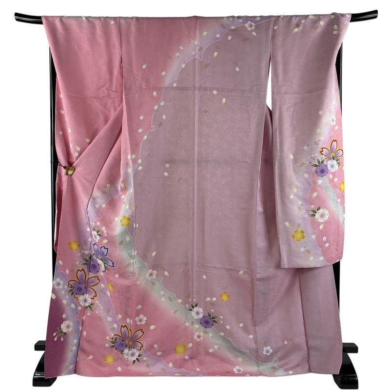 【振袖】 赤系 ピンク 秀品 B 約170cm~約179cm 裄丈69cm以上 (L)size 袖丈91cm以上 7990-9980 二万以下