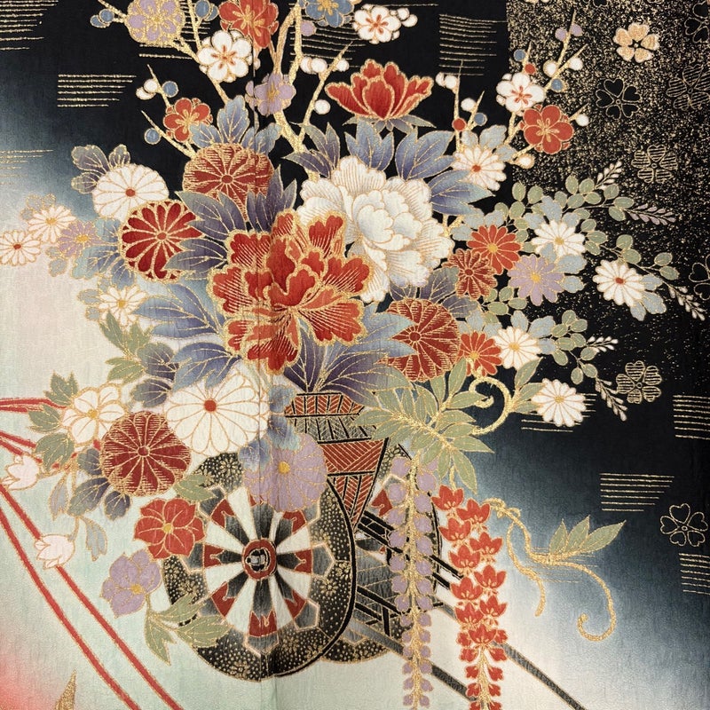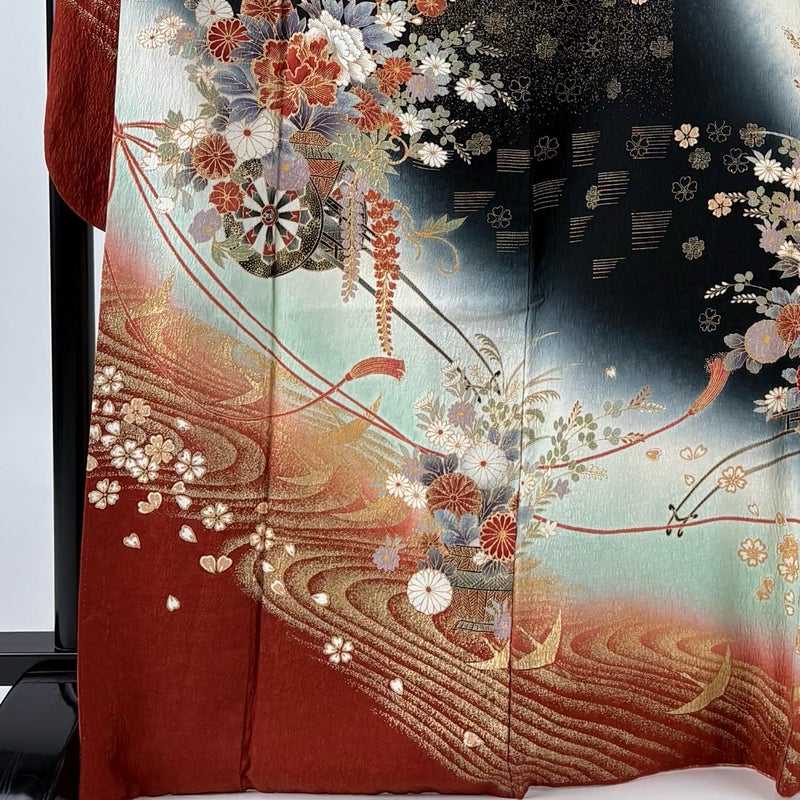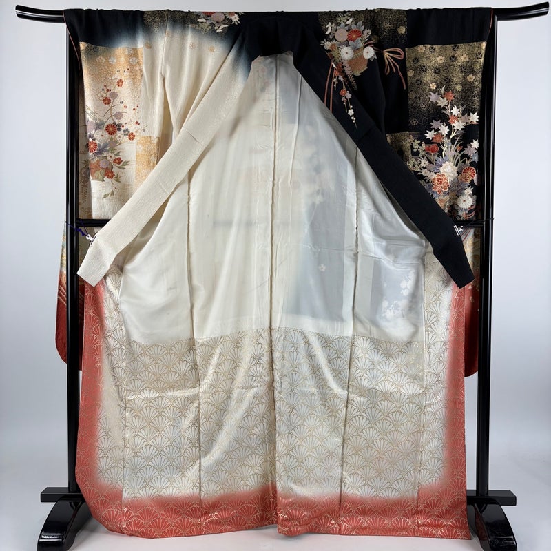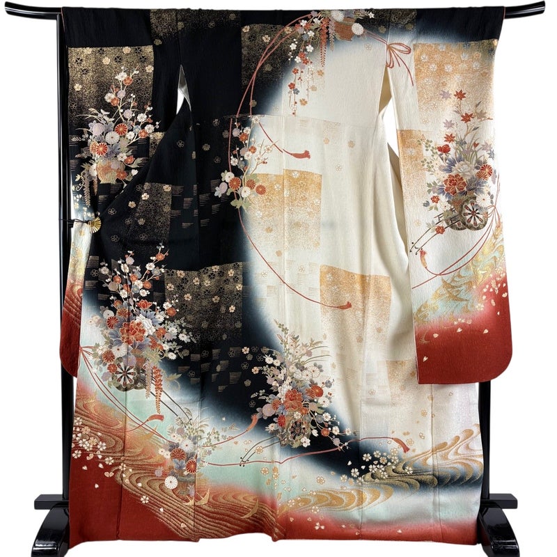【振袖】 黒系 黒 秀品 B 約170cm~約179cm 裄丈69cm以上 (L)size 袖丈91cm以上 7990-9980 二万以下