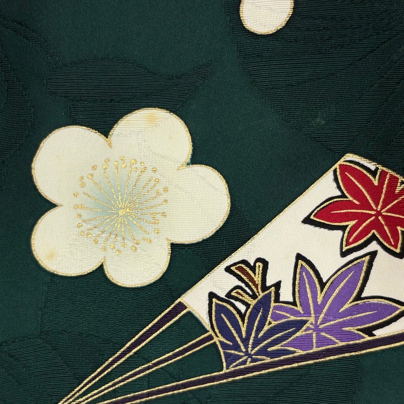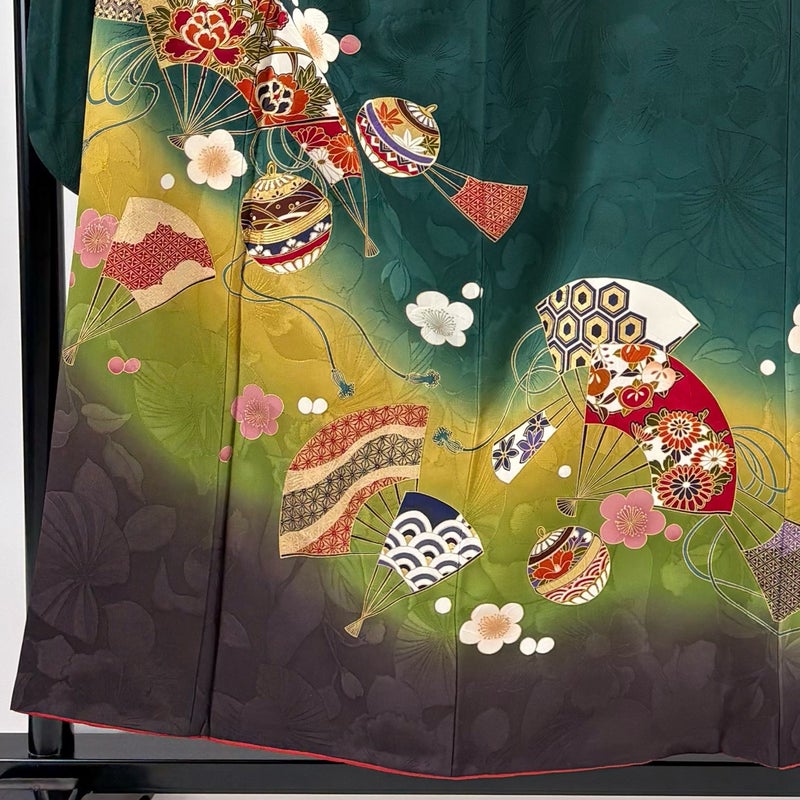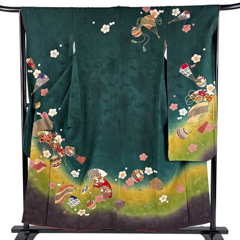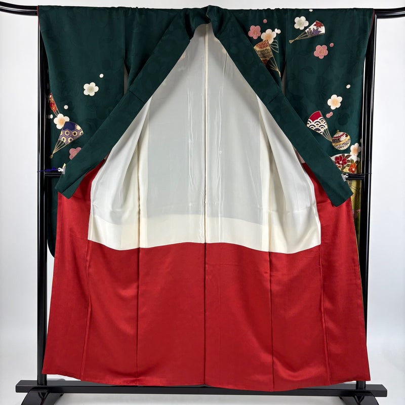 【振袖】 緑系 深緑 秀品 B 約150cm~約159cm 裄丈66cm (M)size 袖丈91cm以上 7990-9980 二万以下