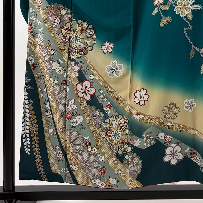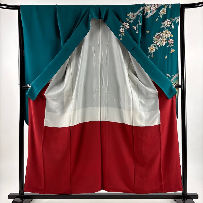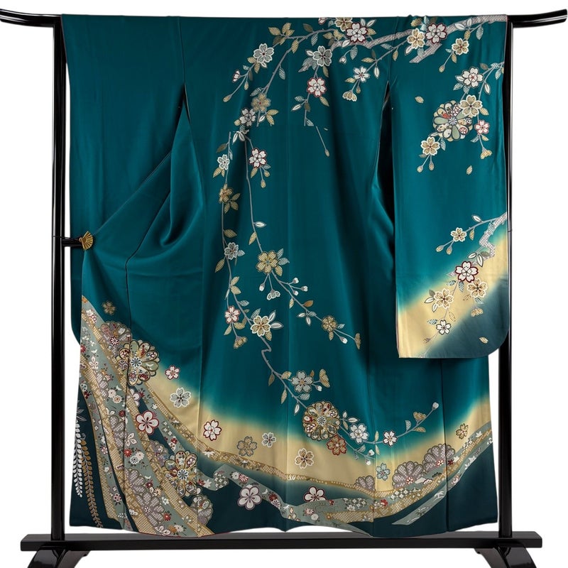 【振袖】 青系 青緑 秀品 C 約150cm~約159cm 裄丈65cm (M)size 袖丈91cm以上 7990-9980 二万以下