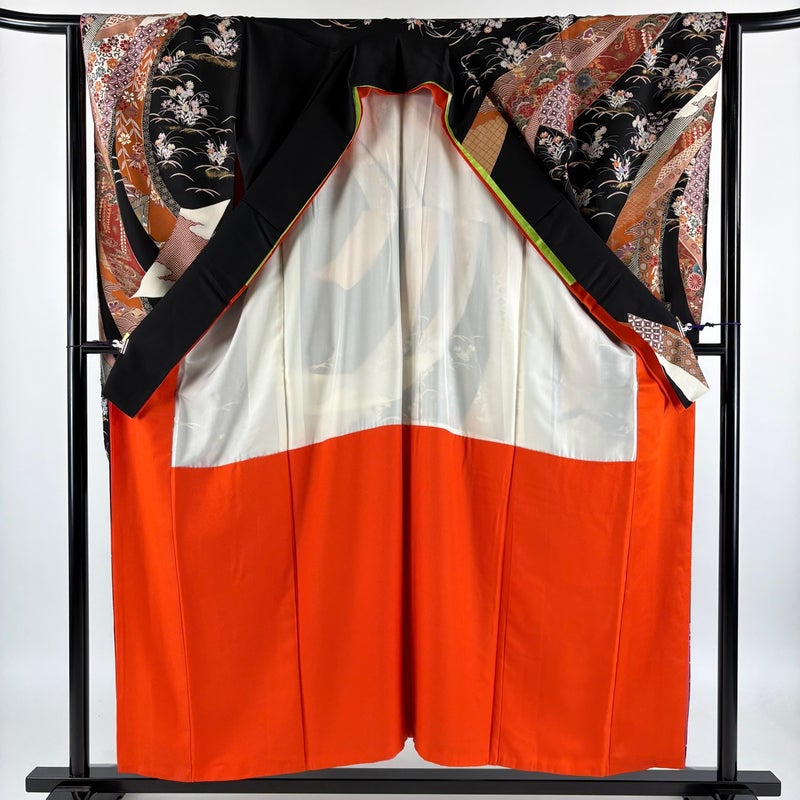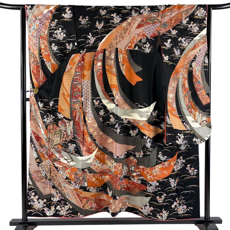 【振袖】 黒系 黒 秀品 B 約150cm~約159cm 裄丈63cm-64cm (S)size 袖丈91cm以上 7990-9980 二万以下