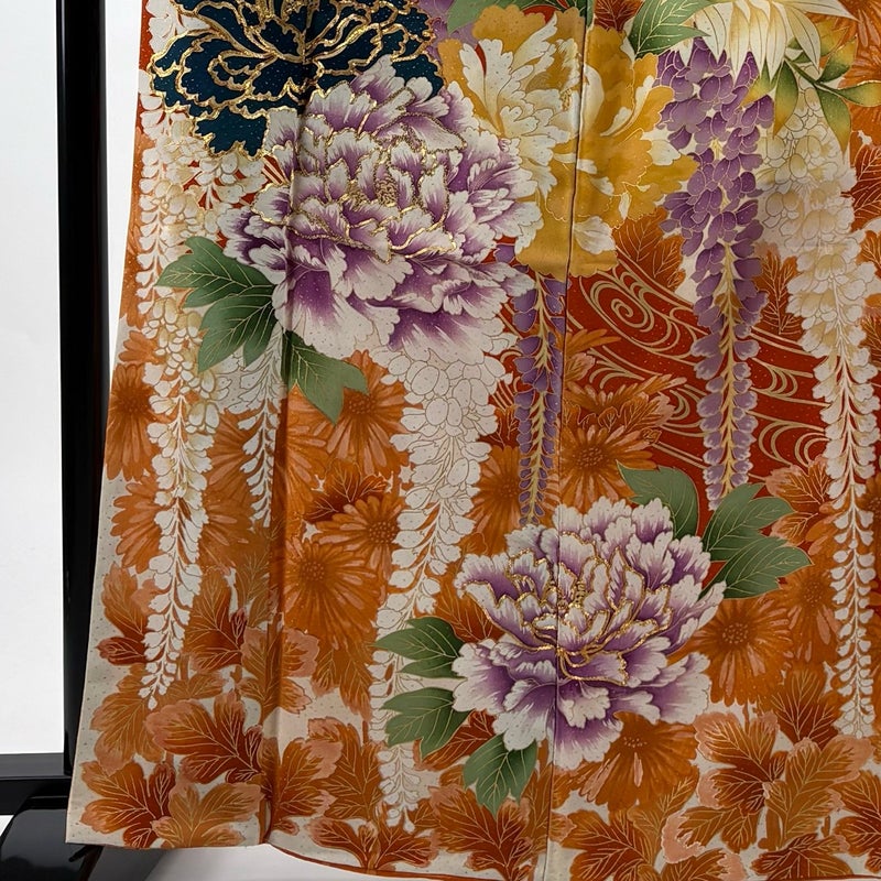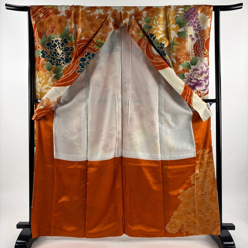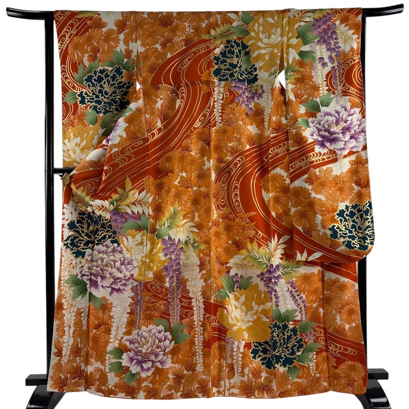 【着物ランク】秀品 【素材】正絹 【身丈】約165.5cm 【裄丈】約64cm 【袖丈】約106.5cm 【袖幅】約33.5cm 【前幅】約24cm 【後幅】約30cm 【サイズ】M 【着物仕立て】袷 【着用時期】10~5月 【状態ランク】ランクB 【着物着用シーン】成人式、謝恩会