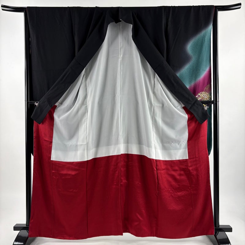【振袖】 黒系 黒 秀品 B 約160cm~約169cm 裄丈65cm (M)size 袖丈91cm以上 7990-9980 二万以下