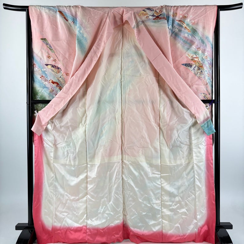 【振袖】 赤系 ピンク 秀品 C 約160cm~約169cm 裄丈66cm (M)size 袖丈91cm以上 7990-9980 二万以下
