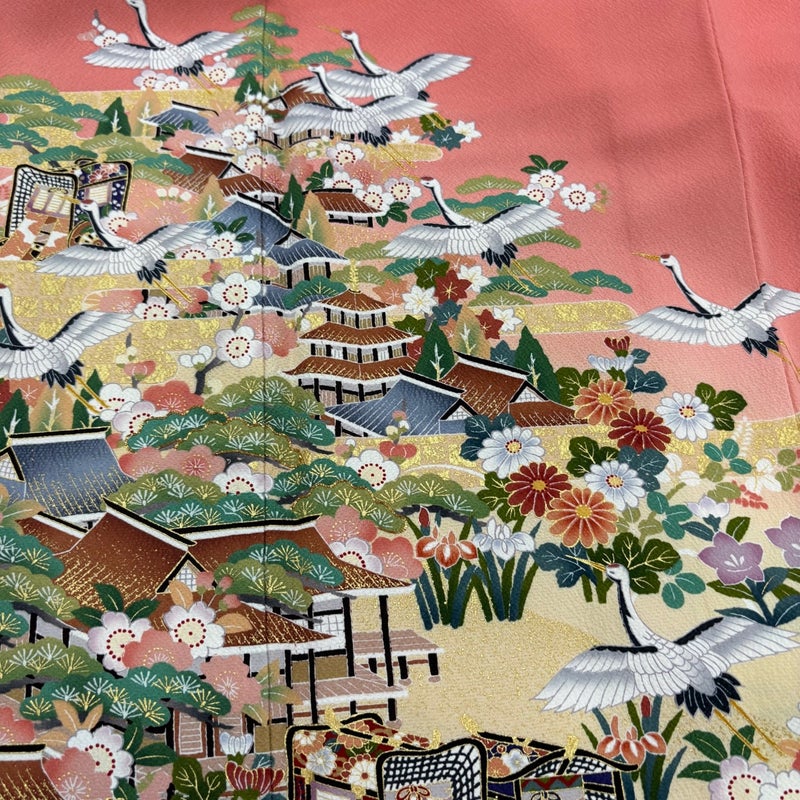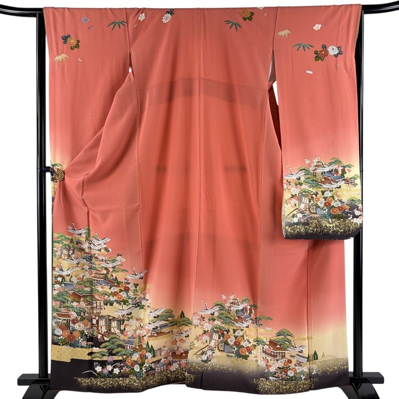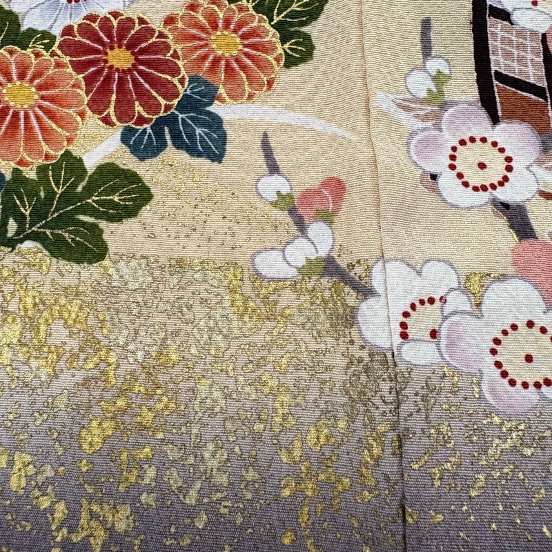 【着物ランク】秀品 【素材】正絹 【身丈】約161cm 【裄丈】約66cm 【袖丈】約107cm 【袖幅】約35cm 【前幅】約23.5cm 【後幅】約30.5cm 【サイズ】M 【着物仕立て】袷 【着用時期】10~5月 【状態ランク】ランクB 【着物着用シーン】成人式、謝恩会