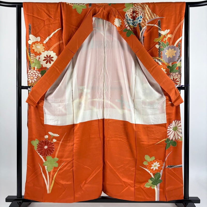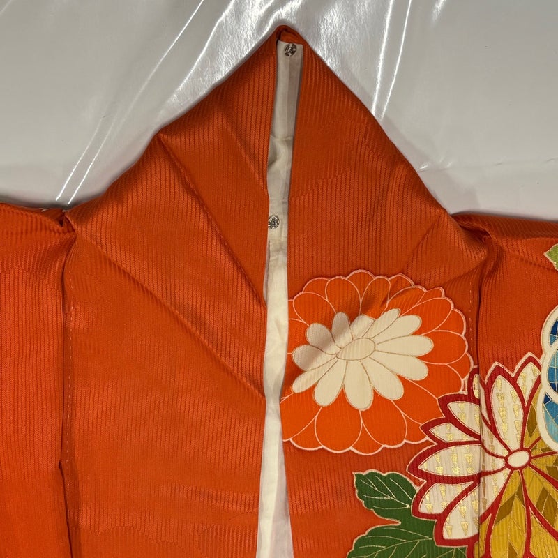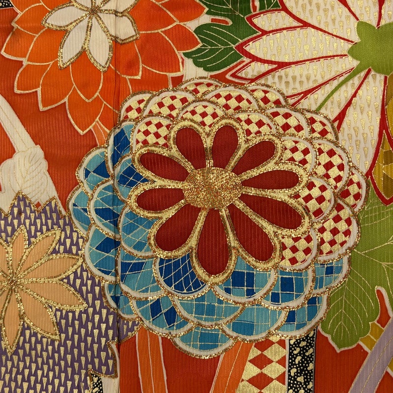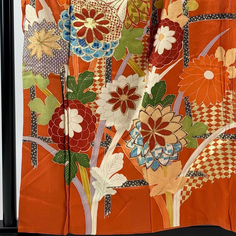【振袖】 赤系 オレンジ 秀品 B 約150cm~約159cm 裄丈63cm-64cm (S)size 袖丈91cm以上 7990-9980 二万以下