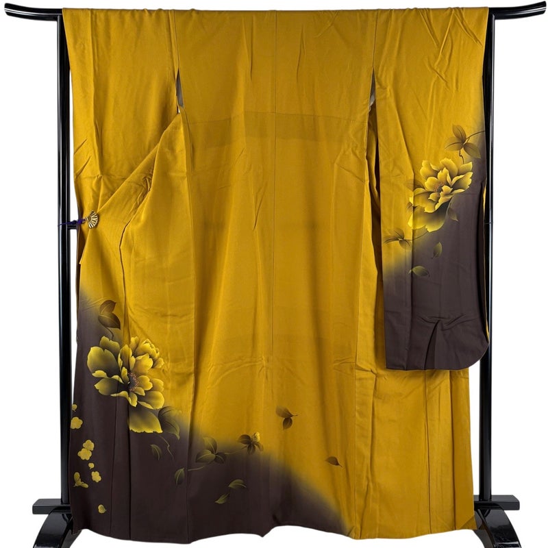 【振袖】 黄色系 からし色 秀品 B 約160cm~約169cm 裄丈65cm (M)size 袖丈91cm以上 4000-7980 二万以下