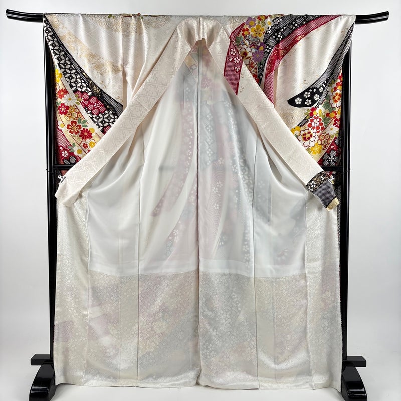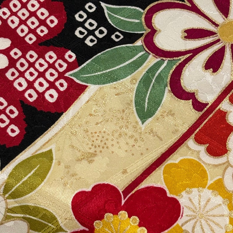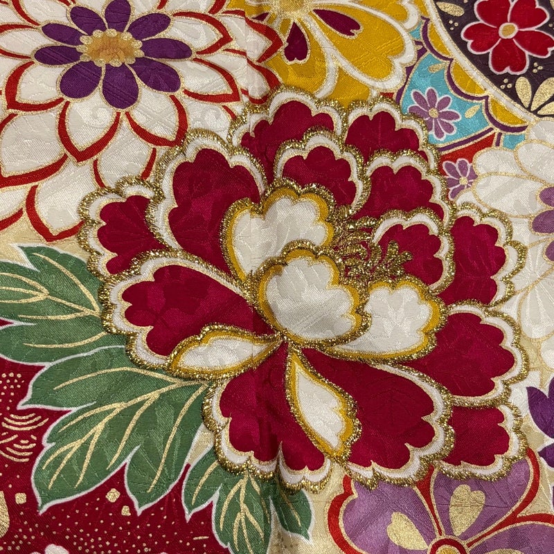 【着物ランク】名品 【素材】正絹 【身丈】約169.5cm 【裄丈】約68cm 【袖丈】約112.5cm 【袖幅】約34.5cm 【前幅】約24.5cm 【後幅】約30cm 【サイズ】L 【着物仕立て】袷 【着用時期】10~5月 【状態ランク】ランクB 【着物着用シーン】成人式、謝恩会