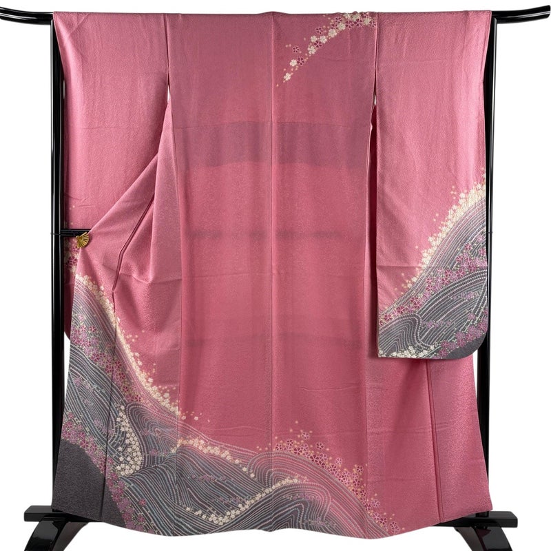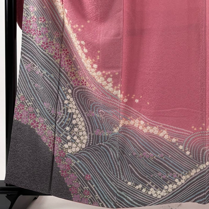【着物ランク】名品 【素材】正絹 【身丈】約161.5cm 【裄丈】約65.5cm 【袖丈】約105.5cm 【袖幅】約33.5cm 【前幅】約23.5cm 【後幅】約30.5cm 【サイズ】M 【着物仕立て】袷 【着用時期】10~5月 【状態ランク】ランクB 【着物着用シーン】成人式、謝恩会