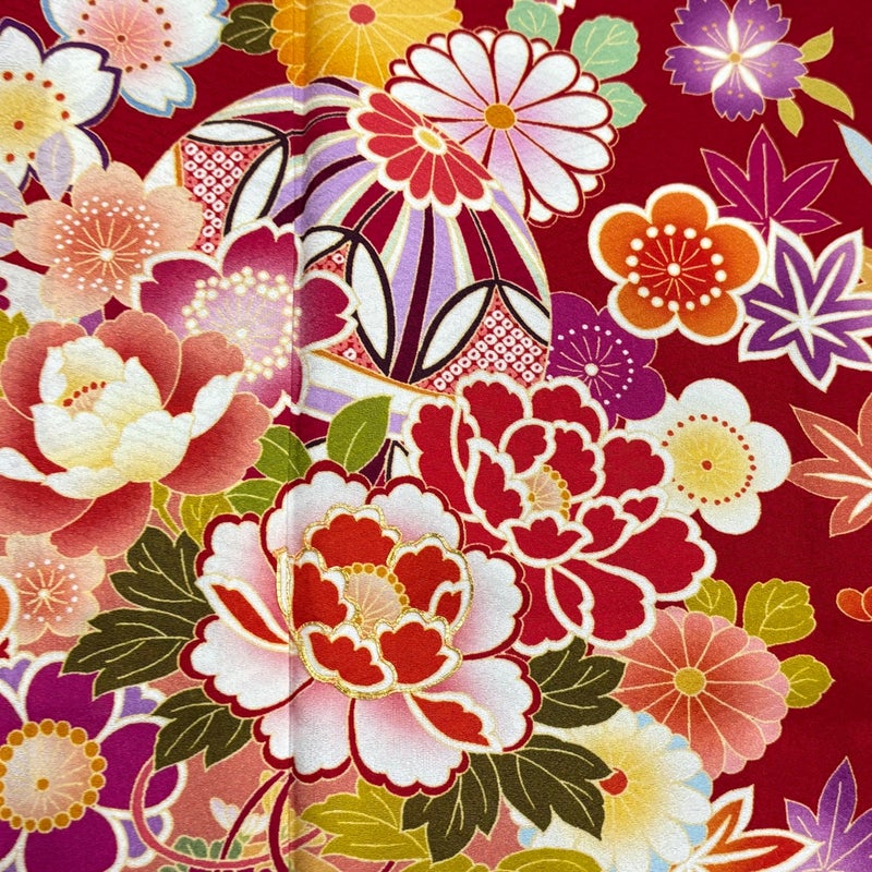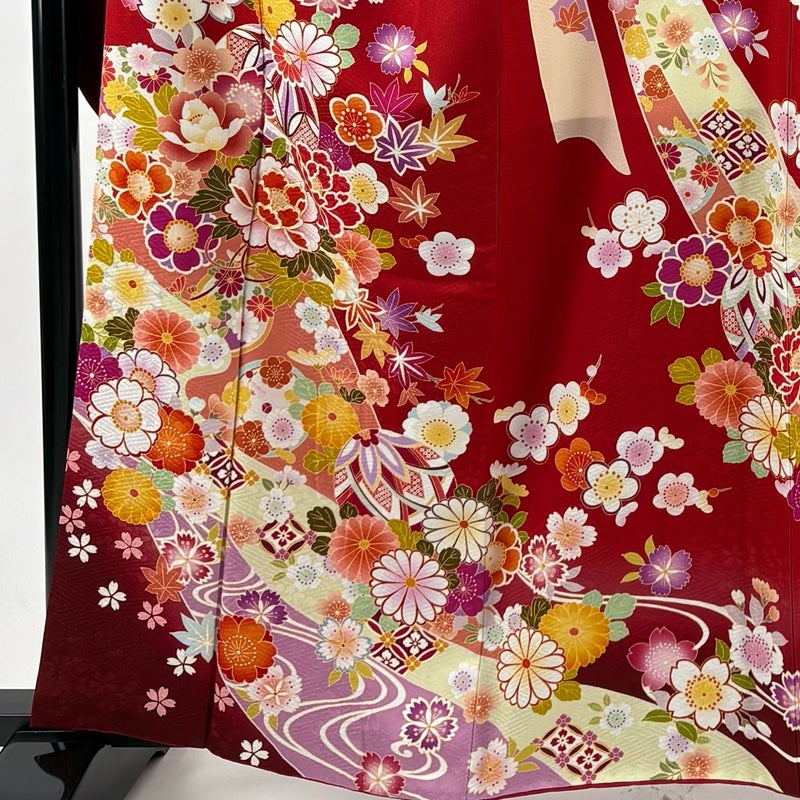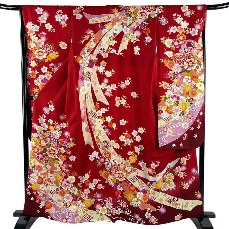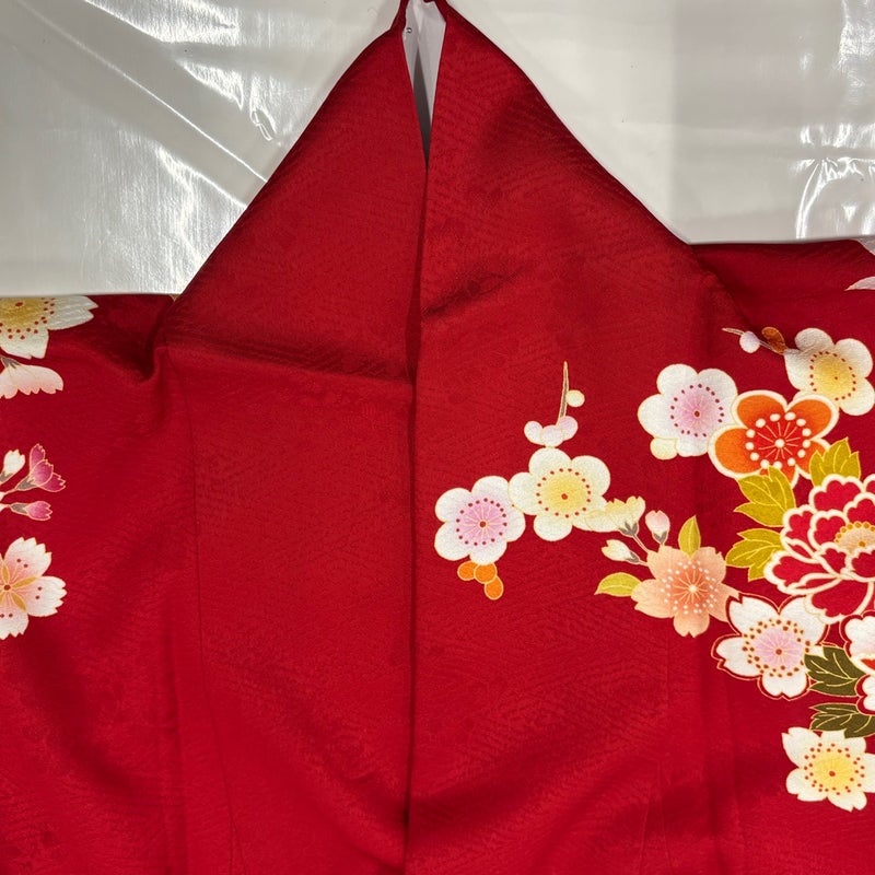 【振袖】 赤系 赤 名品 A 約160cm~約169cm 裄丈66cm (M)size 袖丈91cm以上 9990-29990 美品 二万以下