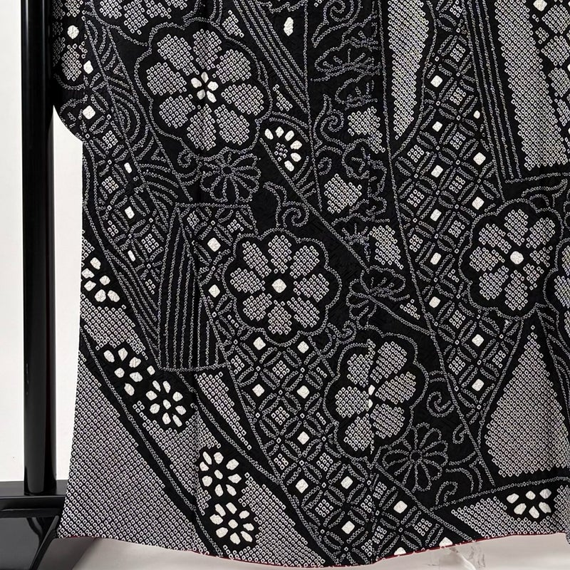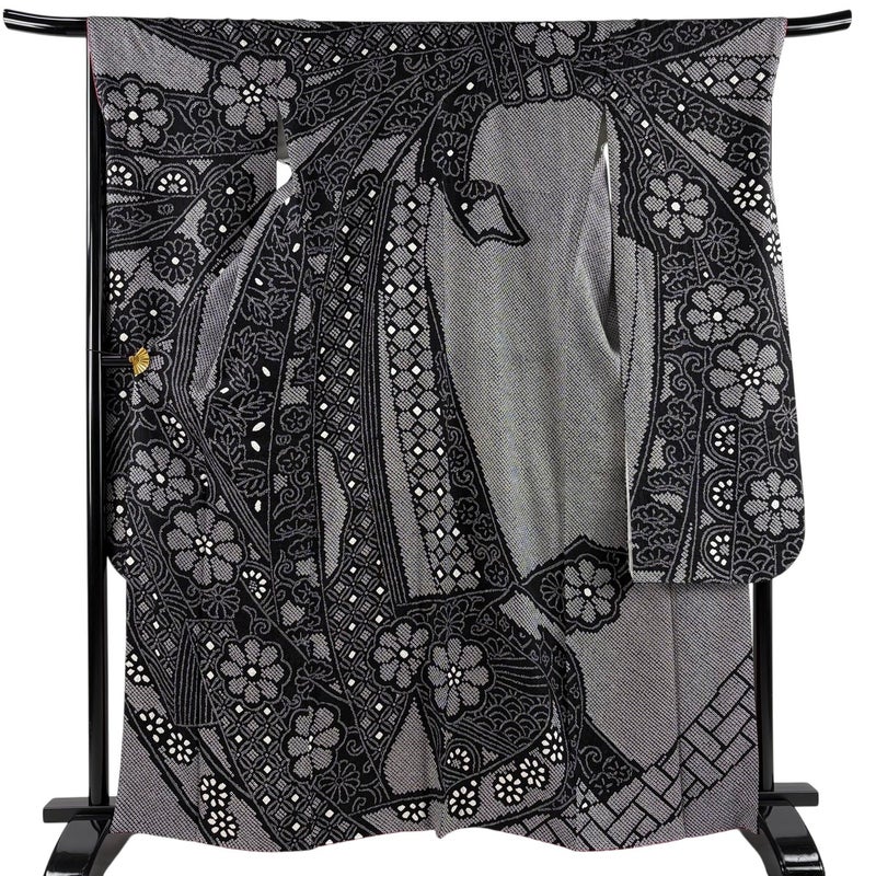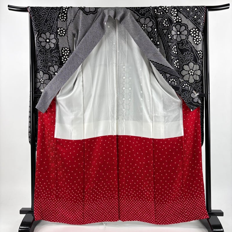 【振袖】 黒系 黒 名品 A 約160cm~約169cm 裄丈67cm-68cm (L)size 袖丈91cm以上 9990-29990 美品 二万以下