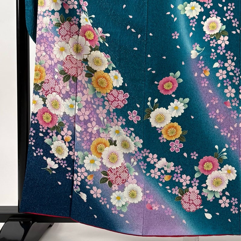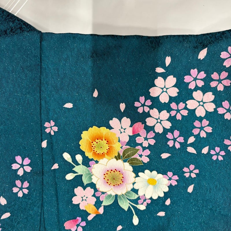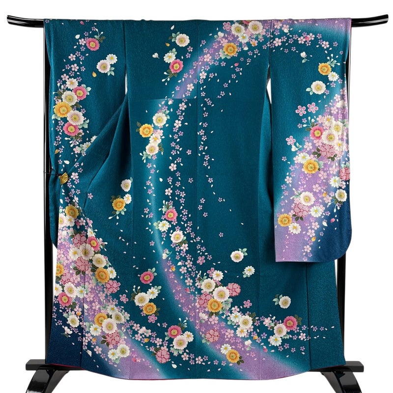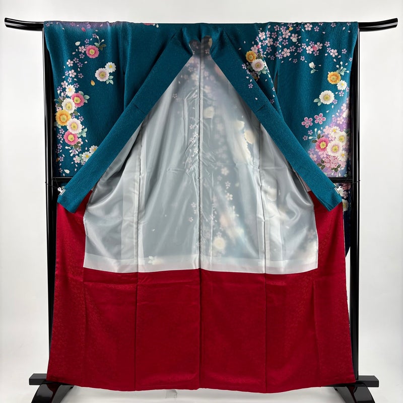 【振袖】 青系 青緑 名品 A 約160cm~約169cm 裄丈66cm (M)size 袖丈91cm以上 9990-29990 美品 二万以下