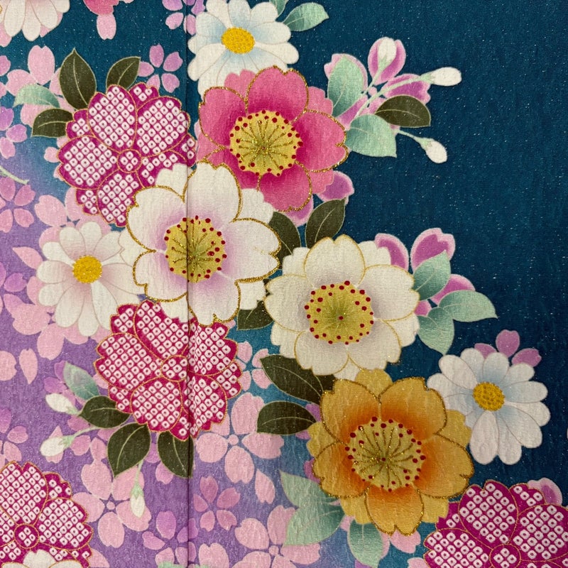 【着物ランク】名品 【素材】正絹 【身丈】約161.5cm 【裄丈】約66cm 【袖丈】約107cm 【袖幅】約34cm 【前幅】約23.5cm 【後幅】約29.5cm 【サイズ】M 【着物仕立て】袷 【着用時期】10~5月 【状態ランク】ランクA 【着物着用シーン】成人式、謝恩会