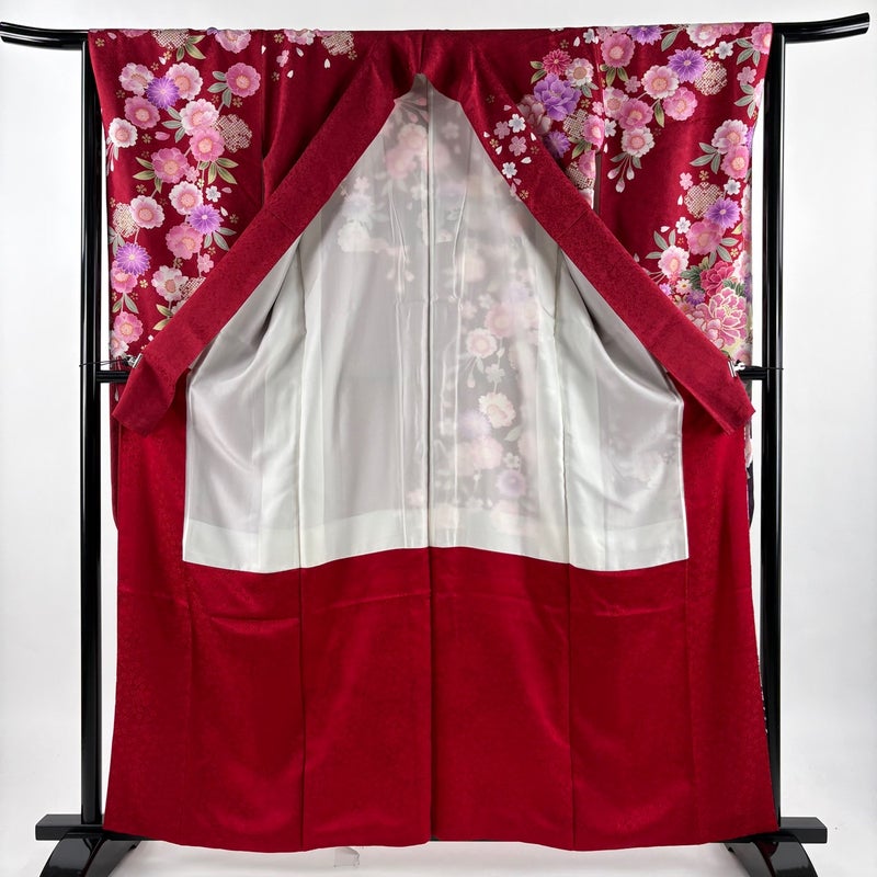 【振袖】 赤系 赤 名品 A 約160cm~約169cm 裄丈63cm-64cm (M)size 袖丈91cm以上 9990-29990 美品 二万以下
