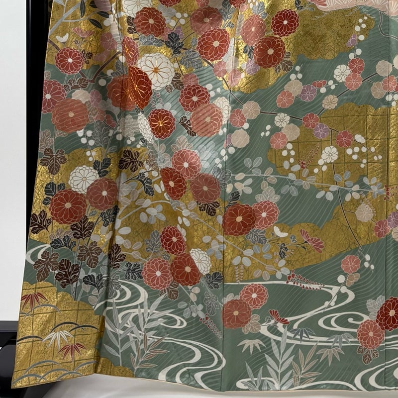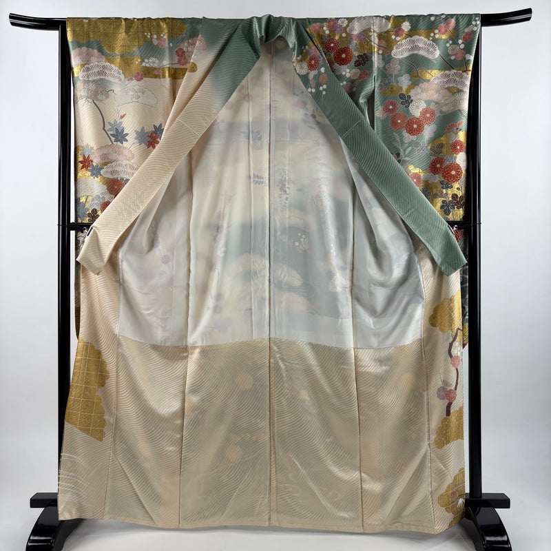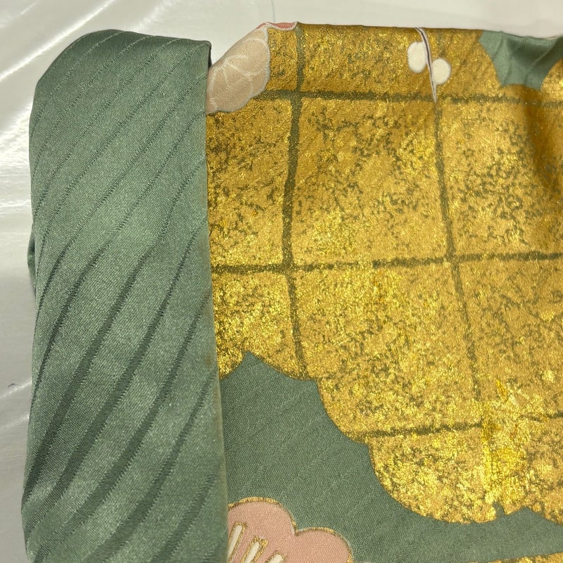 【振袖】 灰色系 灰緑 名品 B 約160cm~約169cm 裄丈63cm-64cm (M)size 袖丈91cm以上 9990-29990 二万以下