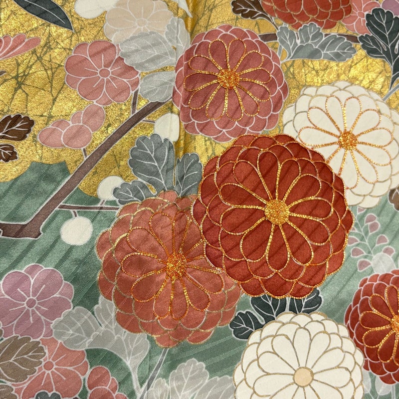 【着物ランク】名品 【素材】正絹 【身丈】約166cm 【裄丈】約64cm 【袖丈】約111.5cm 【袖幅】約33.5cm 【前幅】約24cm 【後幅】約30cm 【サイズ】M 【着物仕立て】袷 【着用時期】10~5月 【状態ランク】ランクB 【着物着用シーン】成人式、謝恩会
