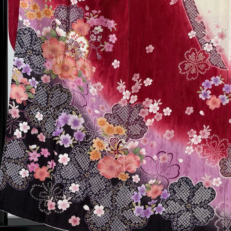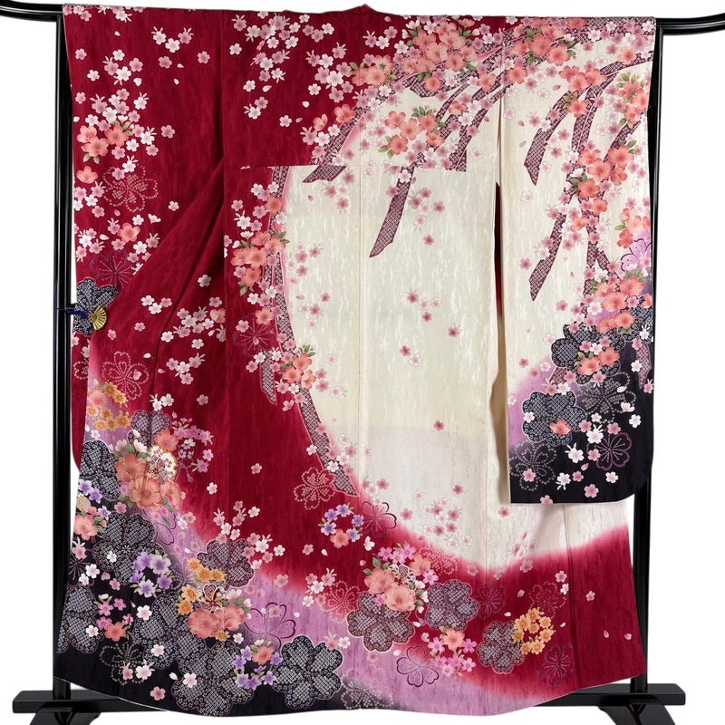 【振袖】 赤系 赤 名品 A 約150cm~約159cm 裄丈66cm (M)size 袖丈91cm以上 9990-29990 美品 二万以下