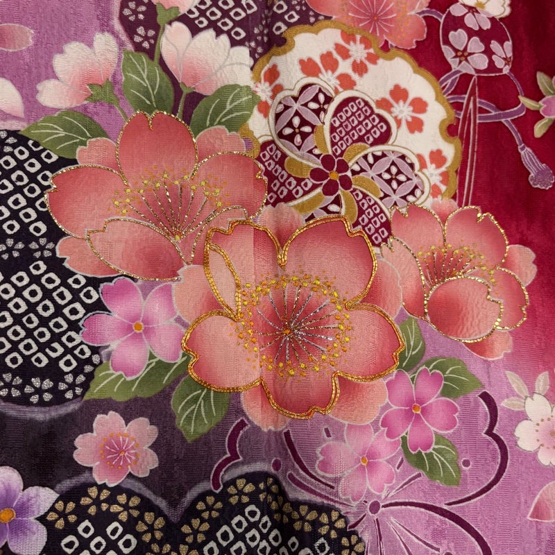 【着物ランク】名品 【素材】正絹 【身丈】約157cm 【裄丈】約66.5cm 【袖丈】約109.5cm 【袖幅】約34cm 【前幅】約23.5cm 【後幅】約30.5cm 【サイズ】M 【着物仕立て】袷 【着用時期】10~5月 【状態ランク】ランクA 【着物着用シーン】成人式、謝恩会