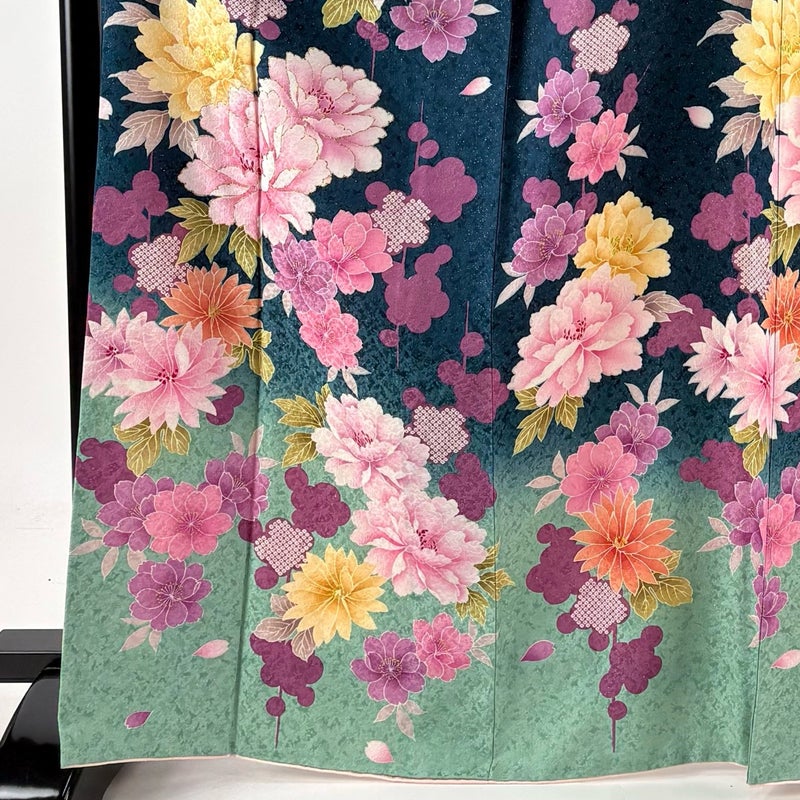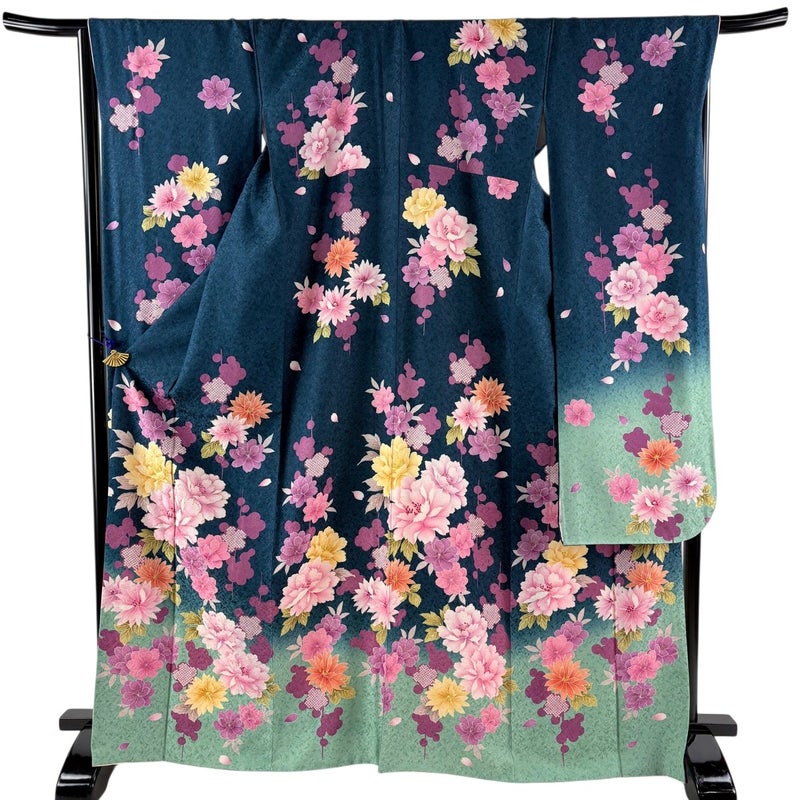 【振袖】 青系 藍色 名品 A 約160cm~約169cm 裄丈67cm-68cm (M)size 袖丈91cm以上 9990-29990 美品 二万以下