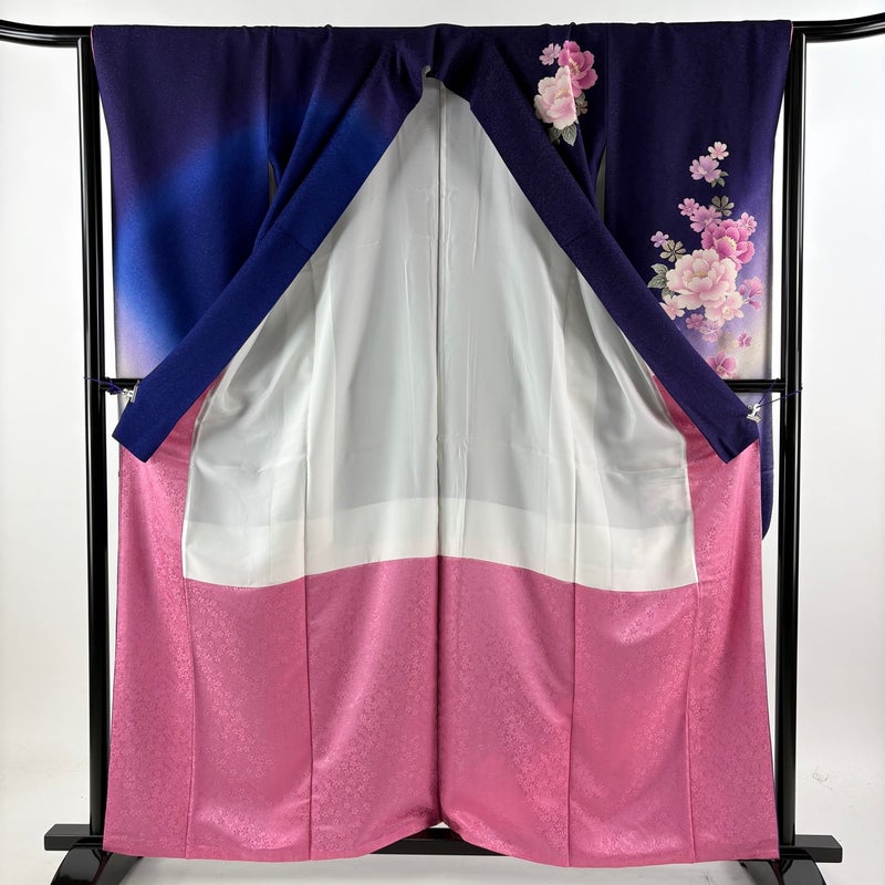 【着物ランク】名品 【素材】正絹 【身丈】約160.5cm 【裄丈】約64.5cm 【袖丈】約102cm 【袖幅】約33.5cm 【前幅】約23.5cm 【後幅】約29.5cm 【サイズ】M 【着物仕立て】袷 【着用時期】10~5月 【状態ランク】ランクA 【着物着用シーン】成人式、謝恩会