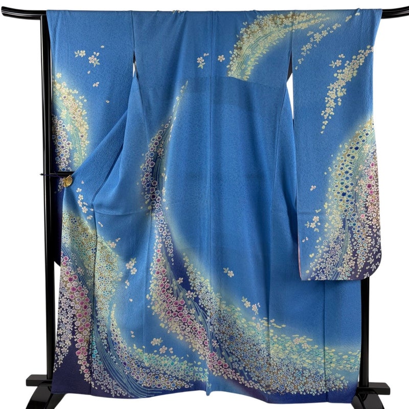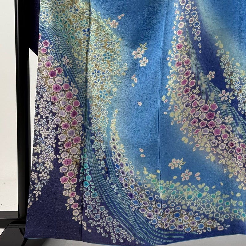 【振袖】 青系 水色 名品 B 約160cm~約169cm 裄丈67cm-68cm (L)size 袖丈91cm以上 9990-29990 二万以下