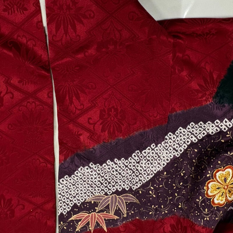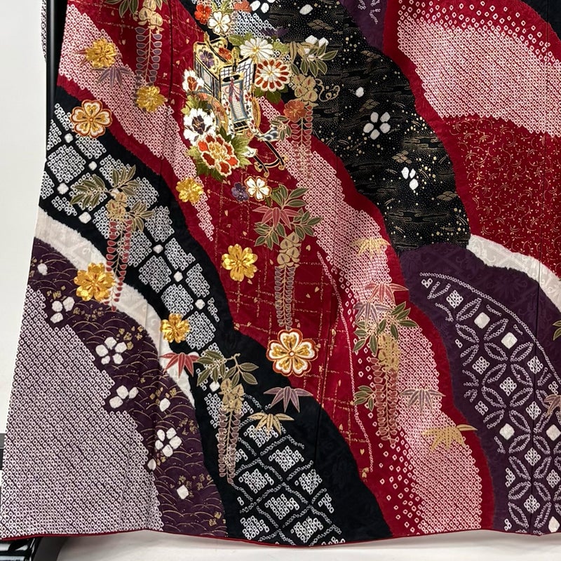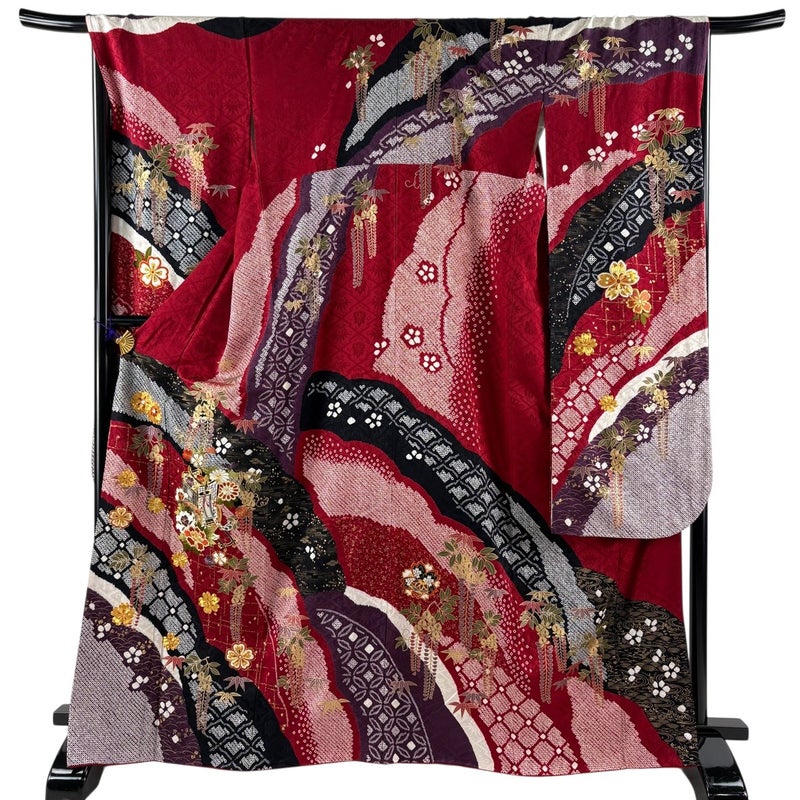 【振袖】 赤系 赤 名品 B 約160cm~約169cm 裄丈67cm-68cm (L)size 袖丈91cm以上 9990-29990 二万以下