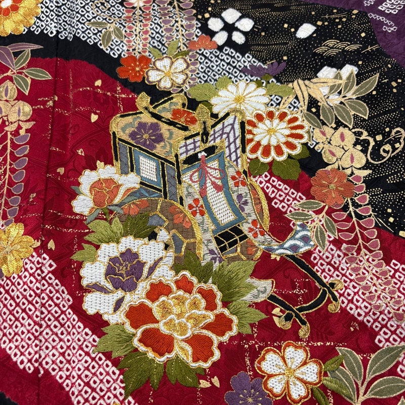 【着物ランク】名品 【素材】正絹 【身丈】約167cm 【裄丈】約68.5cm 【袖丈】約110.5cm 【袖幅】約35.5cm 【前幅】約24.5cm 【後幅】約30cm 【サイズ】L 【着物仕立て】袷 【着用時期】10~5月 【状態ランク】ランクB 【着物着用シーン】成人式、謝恩会