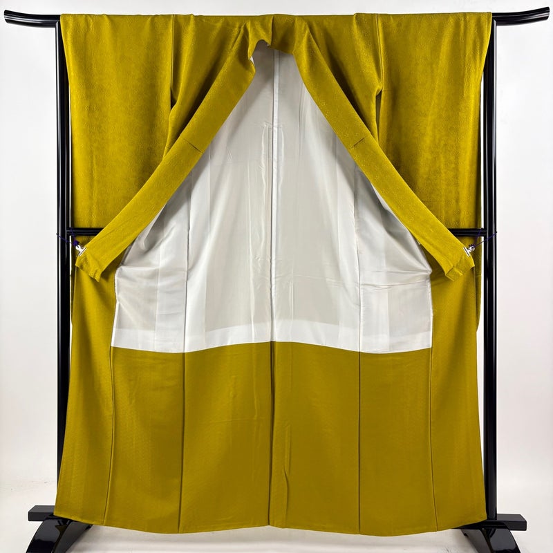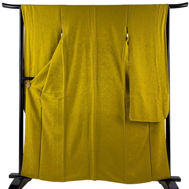 【振袖】 黄色系 からし色 名品 A 約160cm~約169cm 裄丈63cm-64cm (M)size 袖丈91cm以上 9990-29990 美品 二万以下