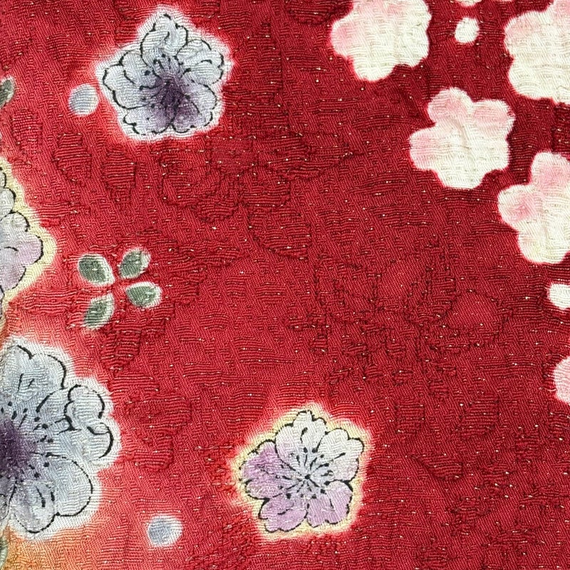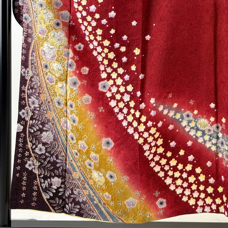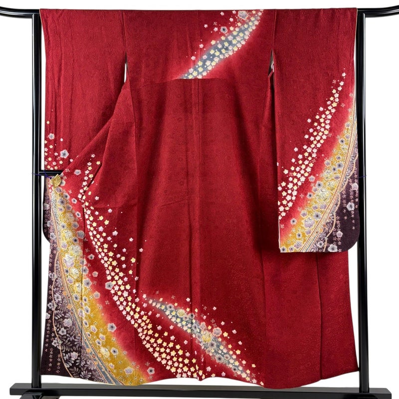 【振袖】 赤系 赤 名品 B 約150cm~約159cm 裄丈63cm-64cm (M)size 袖丈91cm以上 9990-29990 二万以下