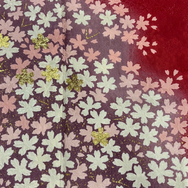【着物ランク】名品 【素材】正絹 【身丈】約170.5cm 【裄丈】約68cm 【袖丈】約112cm 【袖幅】約34cm 【前幅】約25cm 【後幅】約30cm 【サイズ】L 【着物仕立て】袷 【着用時期】10~5月 【状態ランク】ランクB 【着物着用シーン】成人式、謝恩会