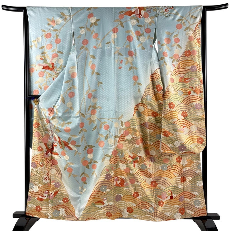 【振袖】 青系 水色 名品 C 約150cm~約159cm 裄丈65cm (M)size 袖丈91cm以上 9990-29990 二万以下