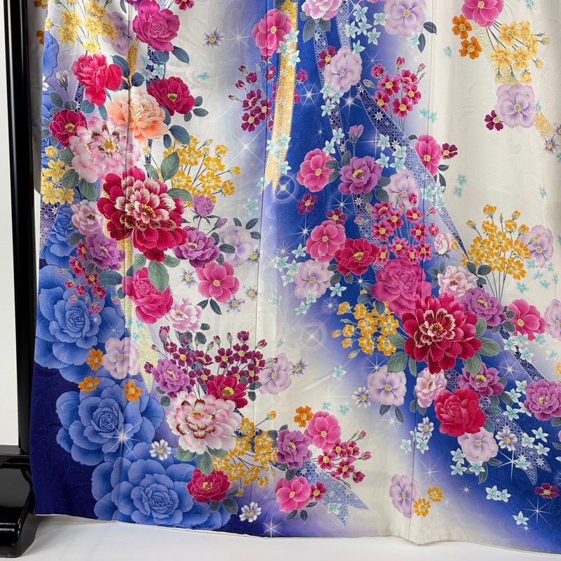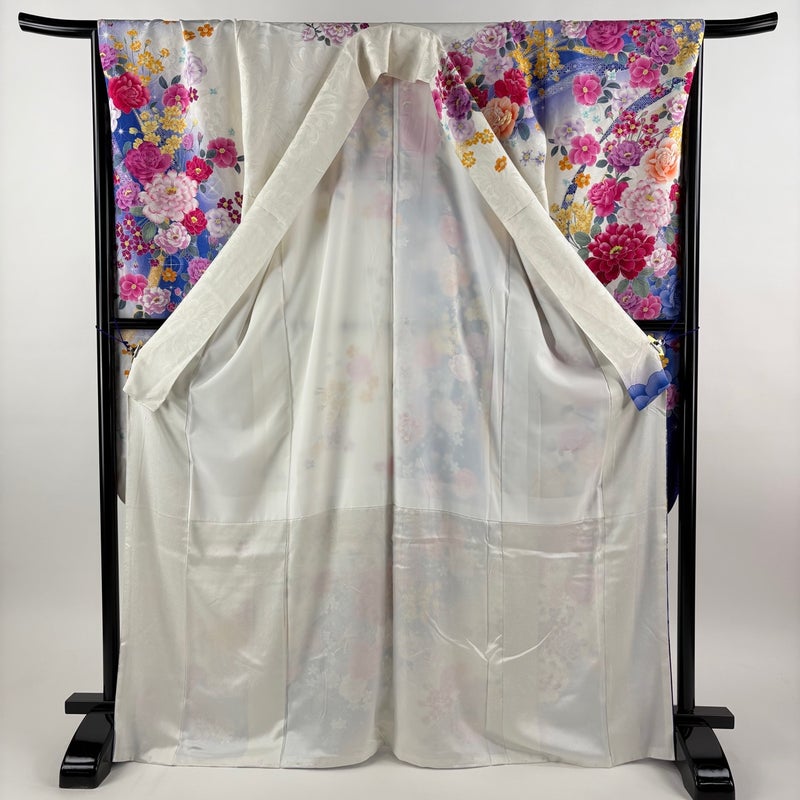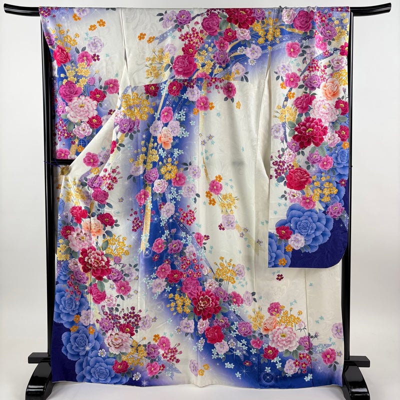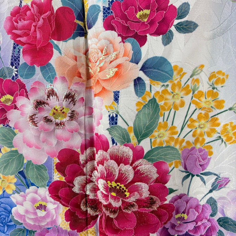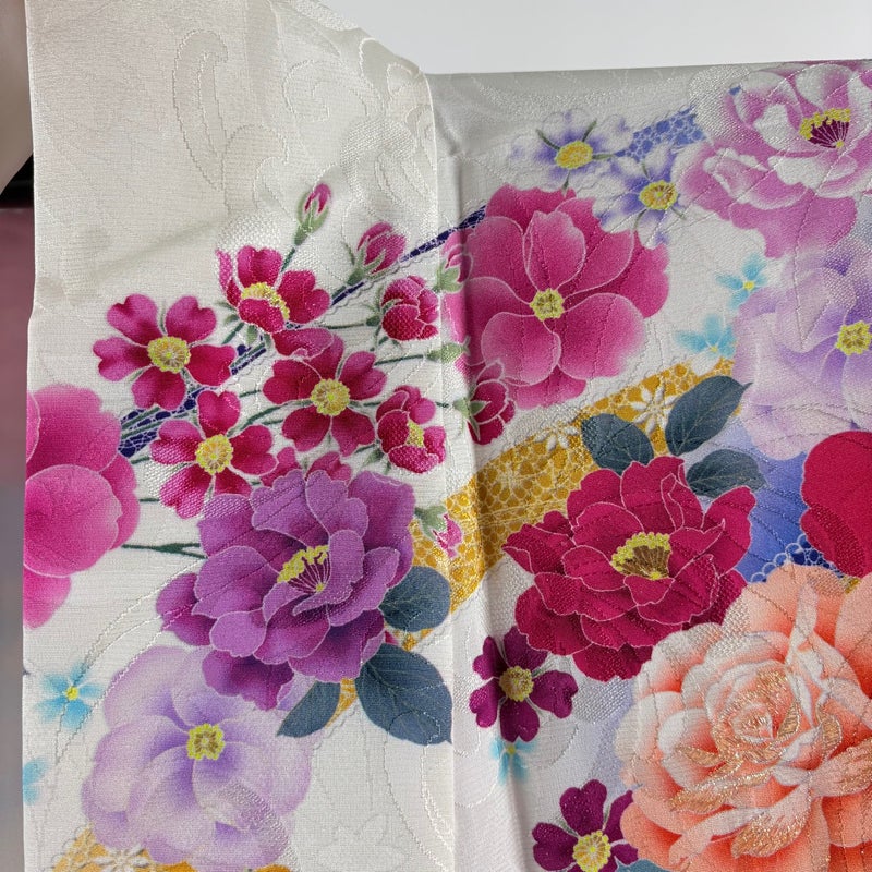 【振袖】 白系 クリーム 逸品 A 約160cm~約169cm 裄丈67cm-68cm (L)size 袖丈91cm以上 30000- 美品 五万以下