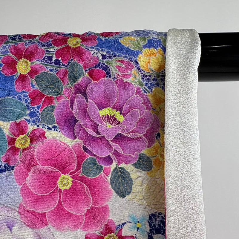 【着物ランク】逸品 【素材】正絹 【身丈】約169cm 【裄丈】約68cm 【袖丈】約113cm 【袖幅】約35cm 【前幅】約24cm 【後幅】約29.5cm 【サイズ】L 【着物仕立て】袷 【着用時期】10~5月 【状態ランク】ランクA 【着物着用シーン】成人式、謝恩会