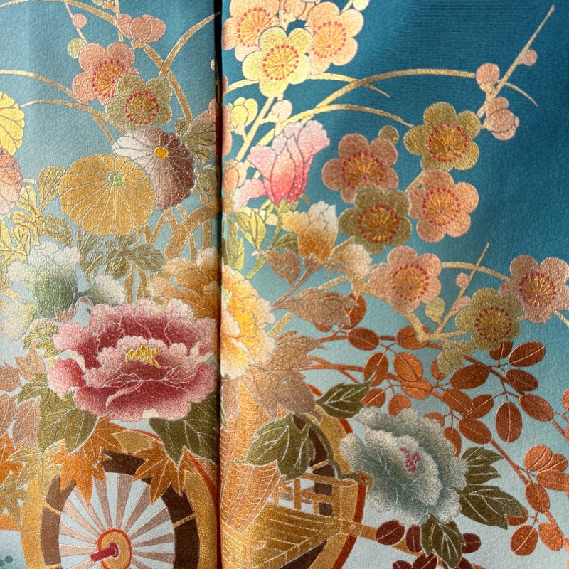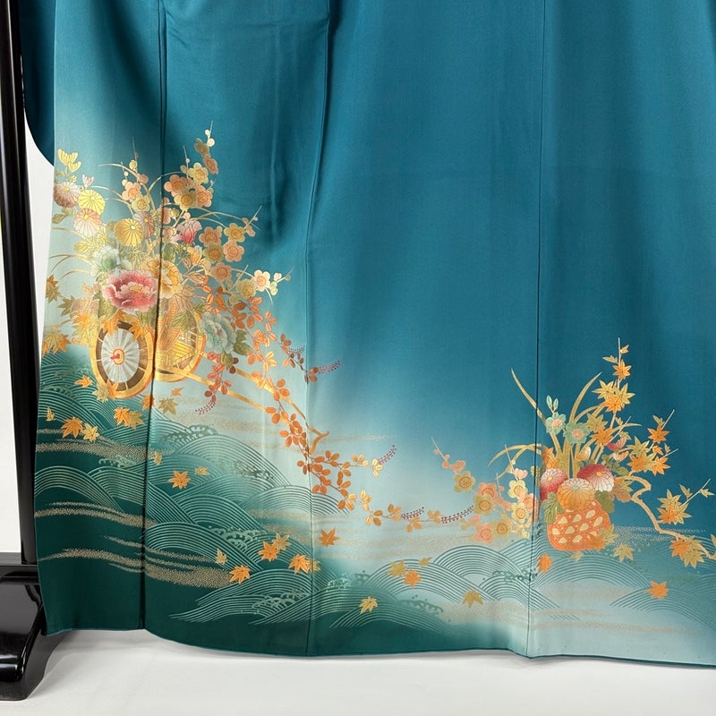 【振袖】 青系 青緑 逸品 B 約160cm~約169cm 裄丈65cm (M)size 袖丈91cm以上 30000- 五万以下