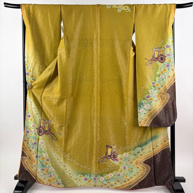 【振袖】 黄色系 山吹茶色 名品 B 約160cm~約169cm 裄丈67cm-68cm (L)size 袖丈91cm以上 9990-29990 二万以下