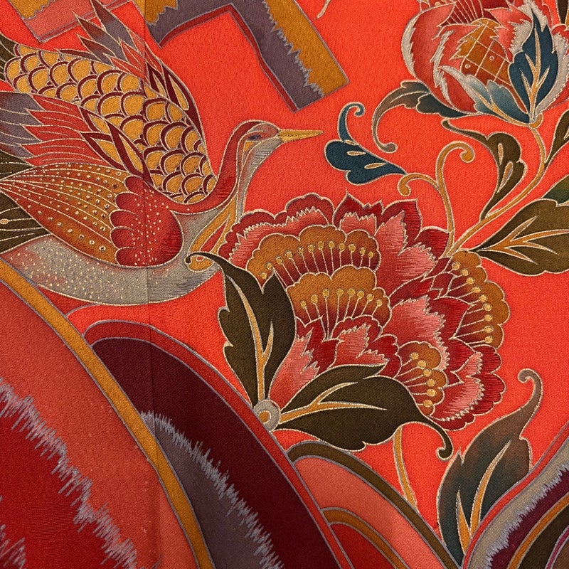 【振袖】 赤系 朱色 名品 B 約160cm~約169cm 裄丈63cm-64cm (M)size 袖丈91cm以上 9990-29990 二万以下