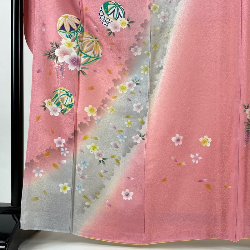 【着物ランク】名品 【素材】正絹 【身丈】約165.5cm 【裄丈】約66.5cm 【袖丈】約110cm 【袖幅】約34cm 【前幅】約23.5cm 【後幅】約29cm 【サイズ】M 【着物仕立て】袷 【着用時期】10~5月 【状態ランク】ランクA 【着物着用シーン】成人式、謝恩会